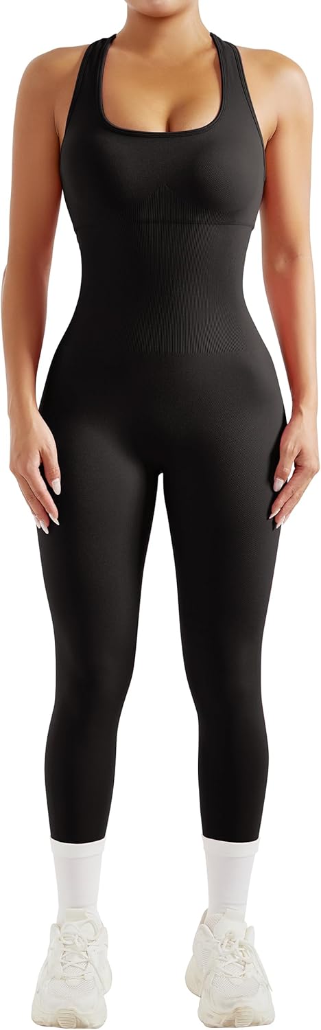 - Premium Fabric: This workout jumpsuit has buttery soft but compressive seamless knit fabric, it’s snug, easy to wear, offers a nice amount of support on target area, light smoothing, tummy control and effortless shaping. The smooth silhouette of this racerback bodysuit gives modify curve look that is bloggers’ favorite and is perfect for your everyday essentials collection.
