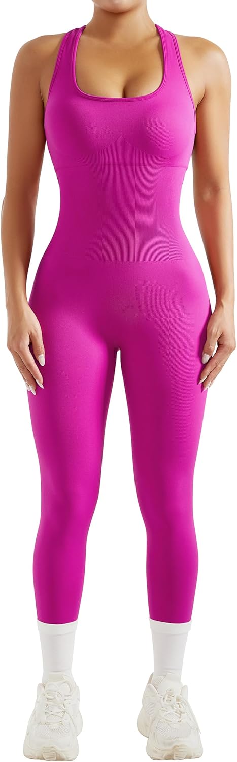 • Premium Fabric: This workout jumpsuit has buttery soft but compressive seamless knit fabric, it’s snug, easy to wear, offers a nice amount of support on target area, light smoothing, tummy control and effortless shaping. The smooth silhouette of this racerback bodysuit gives modify curve look that is bloggers’ favorite and is perfect for your everyday essentials collection.