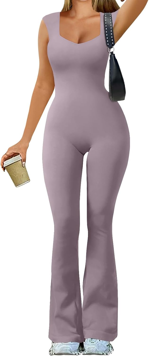 - 🌸Design – This trendy jumpsuit features a zipper-free back and a pull-on design, making it easy to slip on and off.Flare Jumpsuits with sleeveless ,full length with trousers that gently flare at the knee, complete with a soft V neck that show your sexy curvy,make a seductive look.